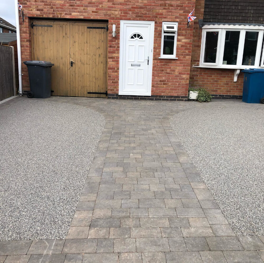 We created this driveway which consists of a double pavior border that merges into a feature path down the centre using multi paviors.