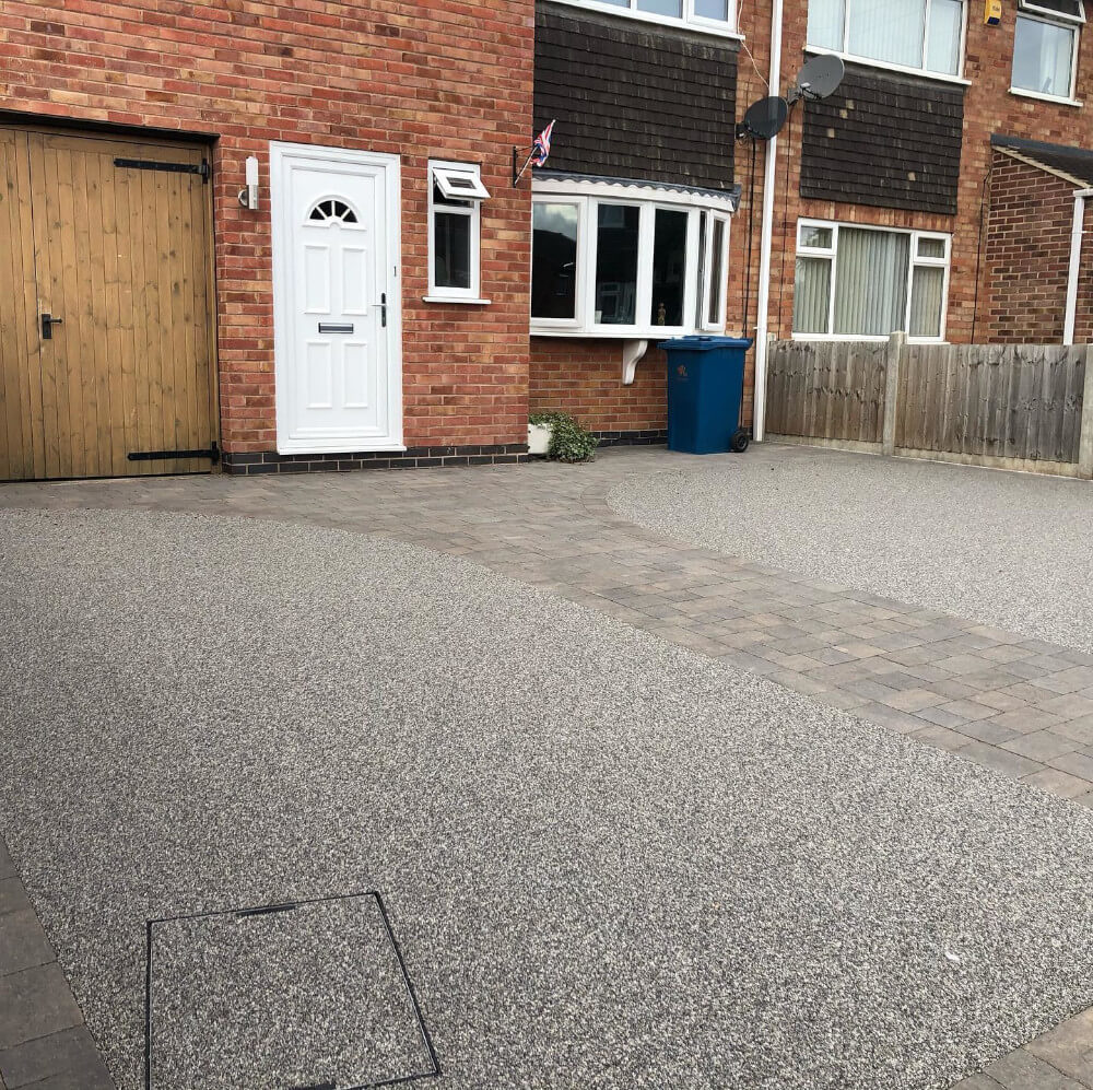 We installed our blue steel resin surfacing blend either side of the path to create a fully low maintenance and usable frontage.